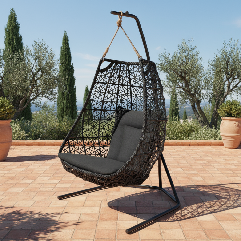 Wir entwerfen Hängesessel, die Wohlbefinden und Umweltschutz vereinen, durch nachhaltige Materialien, verantwortungsvolle Fertigung und optimierten Versand.